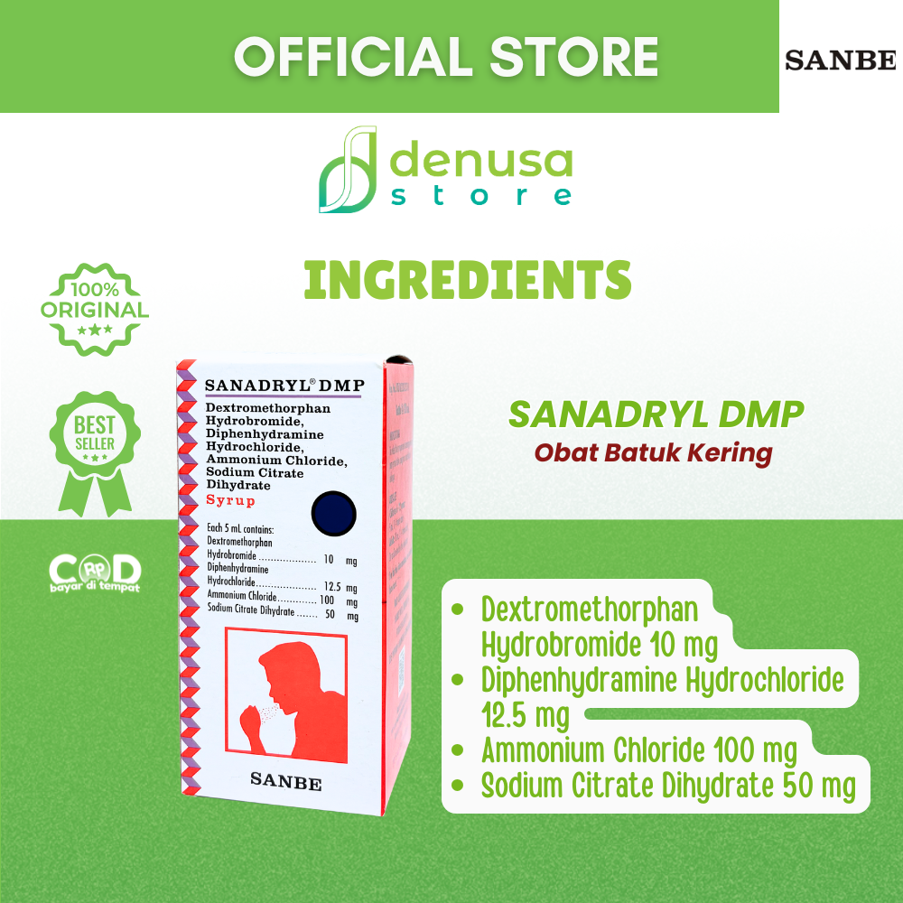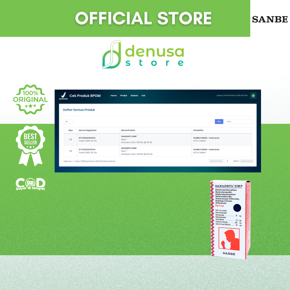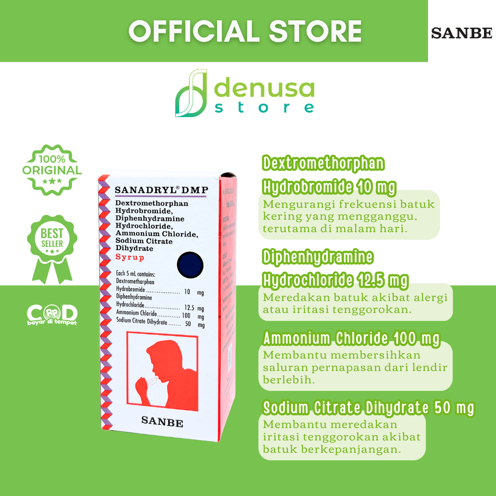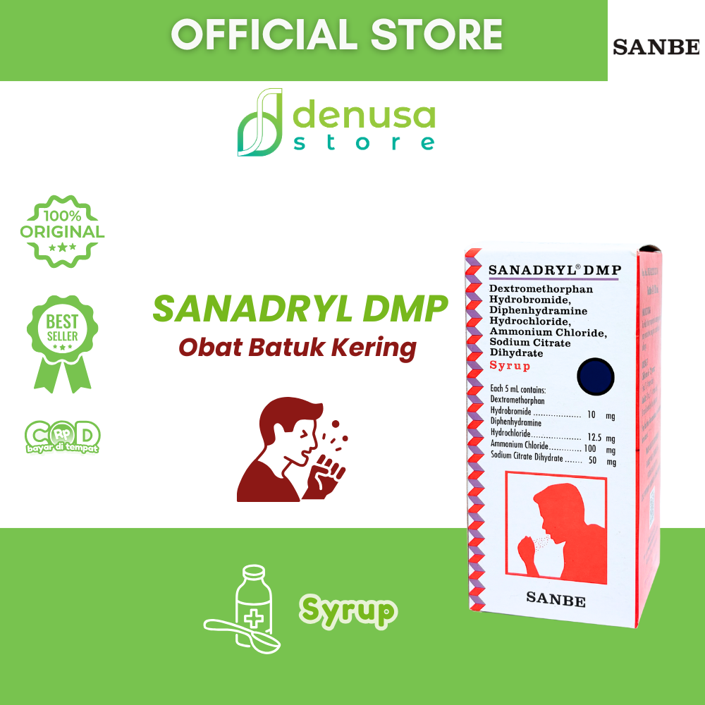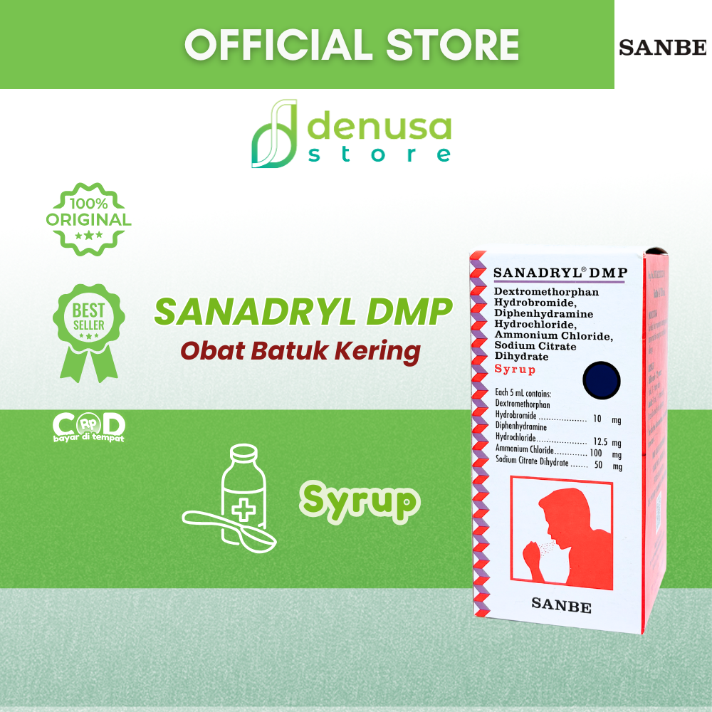 Beli SANADRYL DMP Sirup 120 ml hanya di denusastore.com. Dapatkan pereda batuk kering yang efektif dan aman!