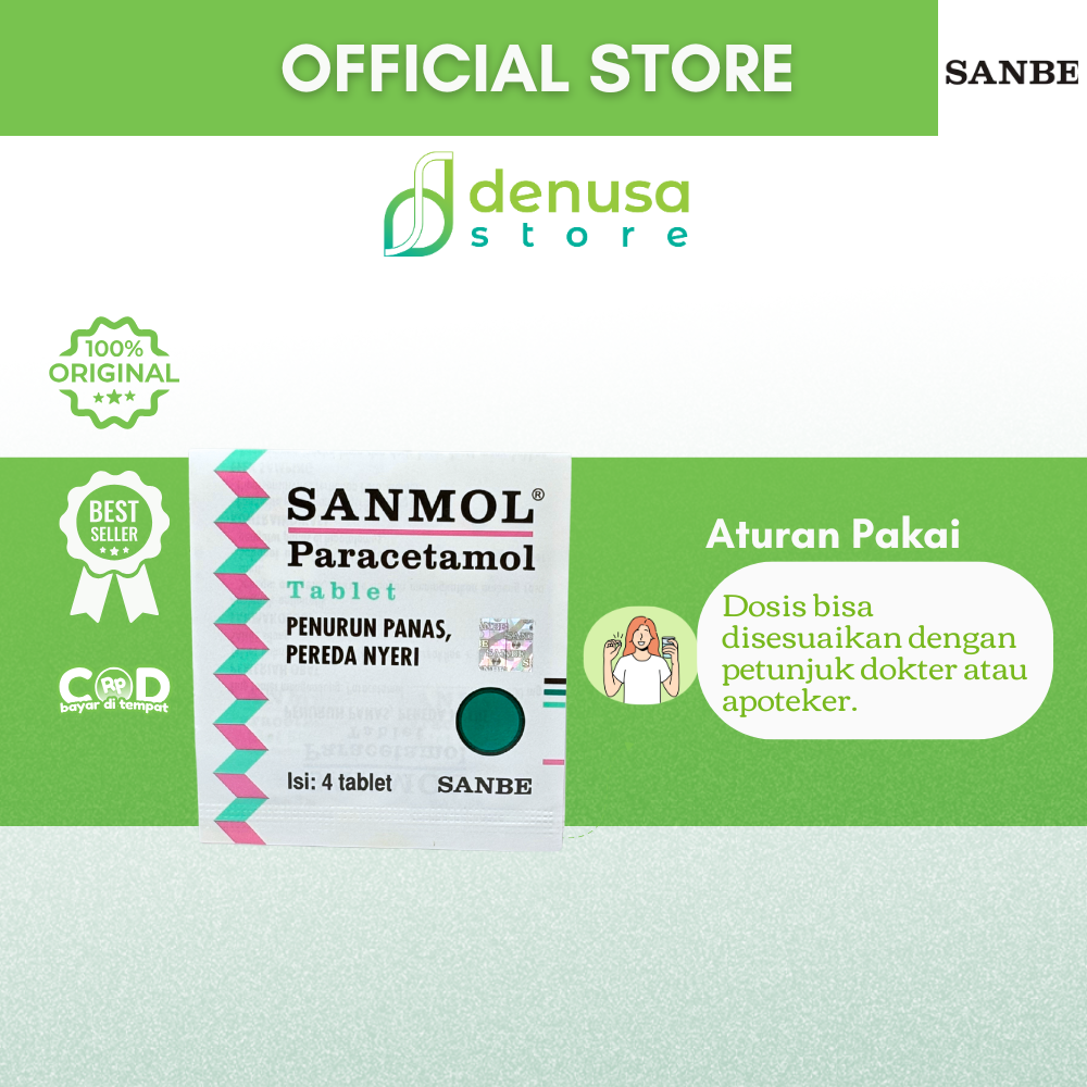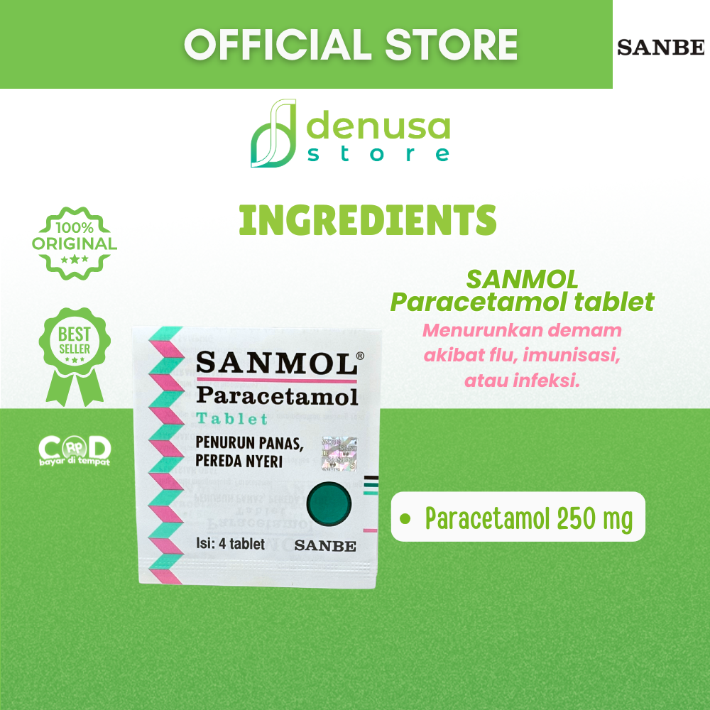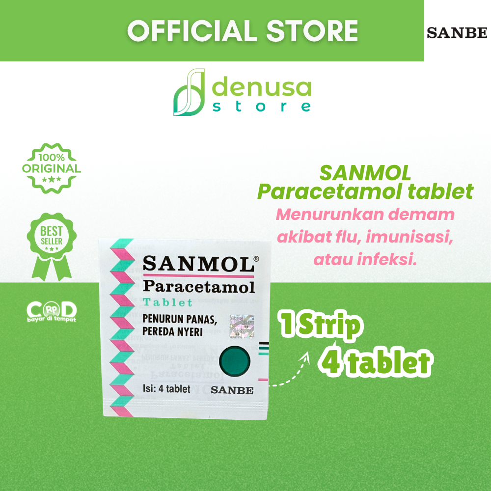 Beli SANMOL Paracetamol 1 Strip 4 Tablet hanya di denusastore.com. Dapatkan pereda nyeri dan demam yang aman dan efektif untuk seluruh anggota keluarga!