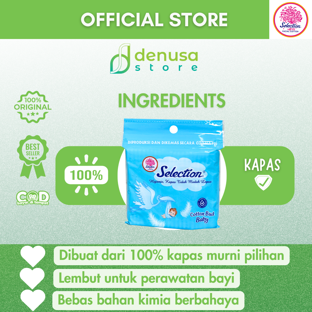 Beli SELECTION Baby Cotton Bud 100 pcs hanya di denusastore.com dan nikmati kemudahan serta keamanan dalam merawat si kecil setiap hari!