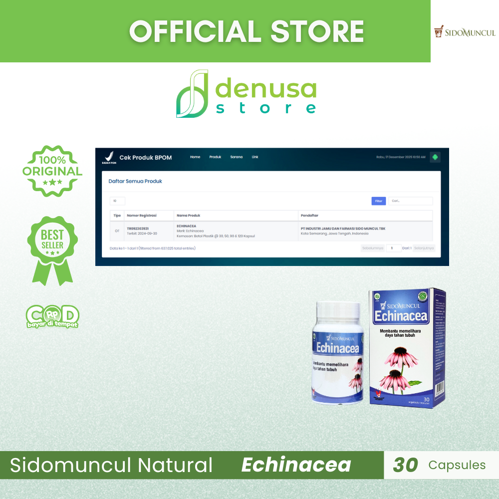 Beli Sidomuncul Echinacea 30 Vegetable Capsules hanya di denusastore.com. Dapatkan dukungan herbal praktis untuk menjaga kesehatan harian Anda!
