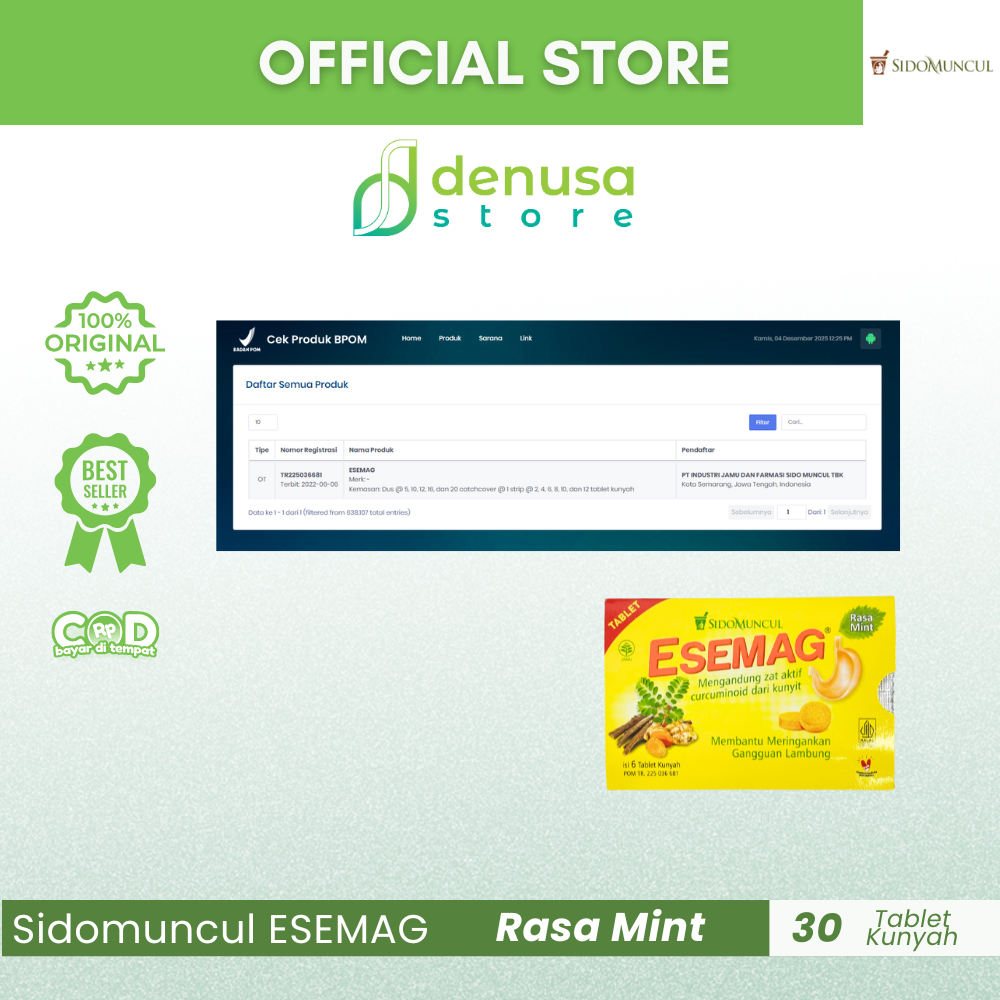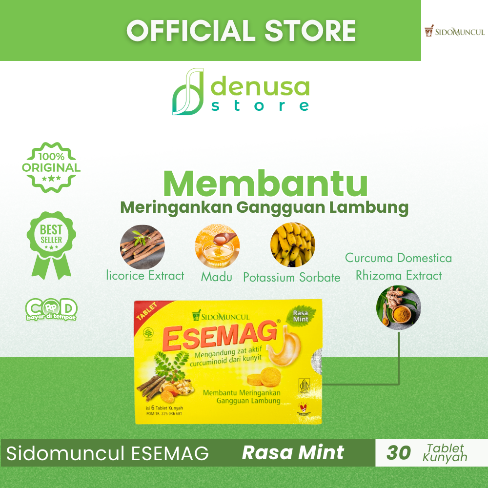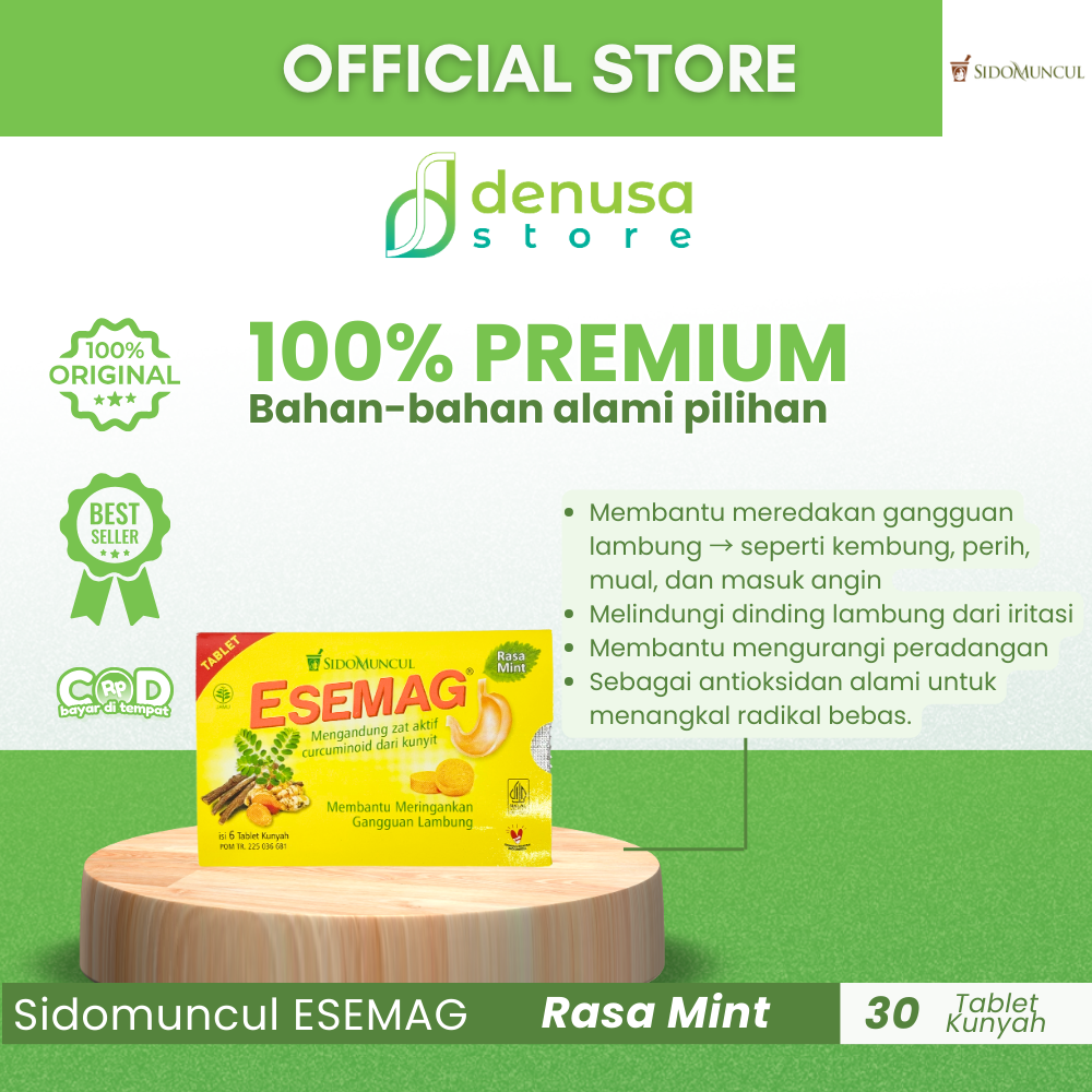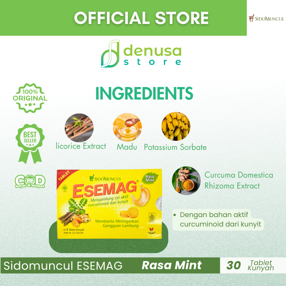 Beli SIDOMUNCUL Esemag Rasa Mint 30 Tablet hanya di denusastore.com. Minuman herbal yang praktis untuk membantu meredakan rasa tidak nyaman di perut!