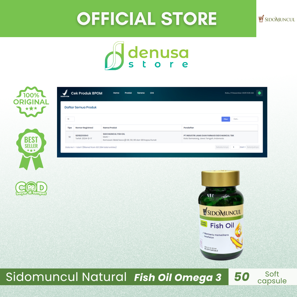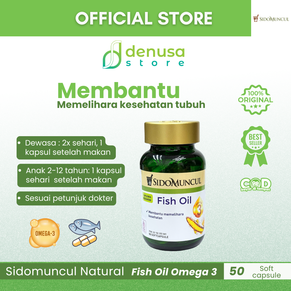 Beli Sidomuncul Fish Oil Omega 3 50 Softcapsule hanya di denusastore.com. Dapatkan dukungan nutrisi esensial yang praktis untuk kesehatan keluarga Anda!