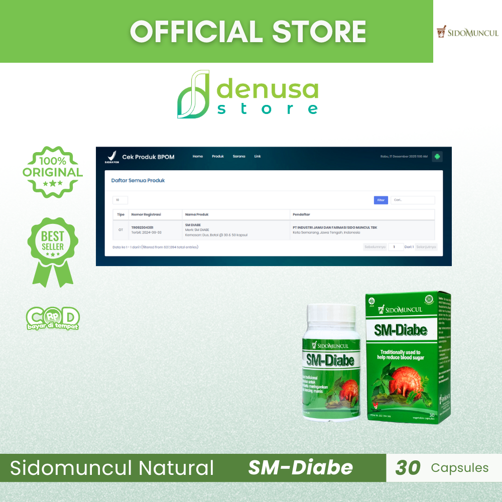 Beli Sidomuncul SM-Diabe 30 Vegetable Capsules hanya di denusastore.com. Dapatkan dukungan herbal praktis untuk menjaga kesehatan gula darah Anda!