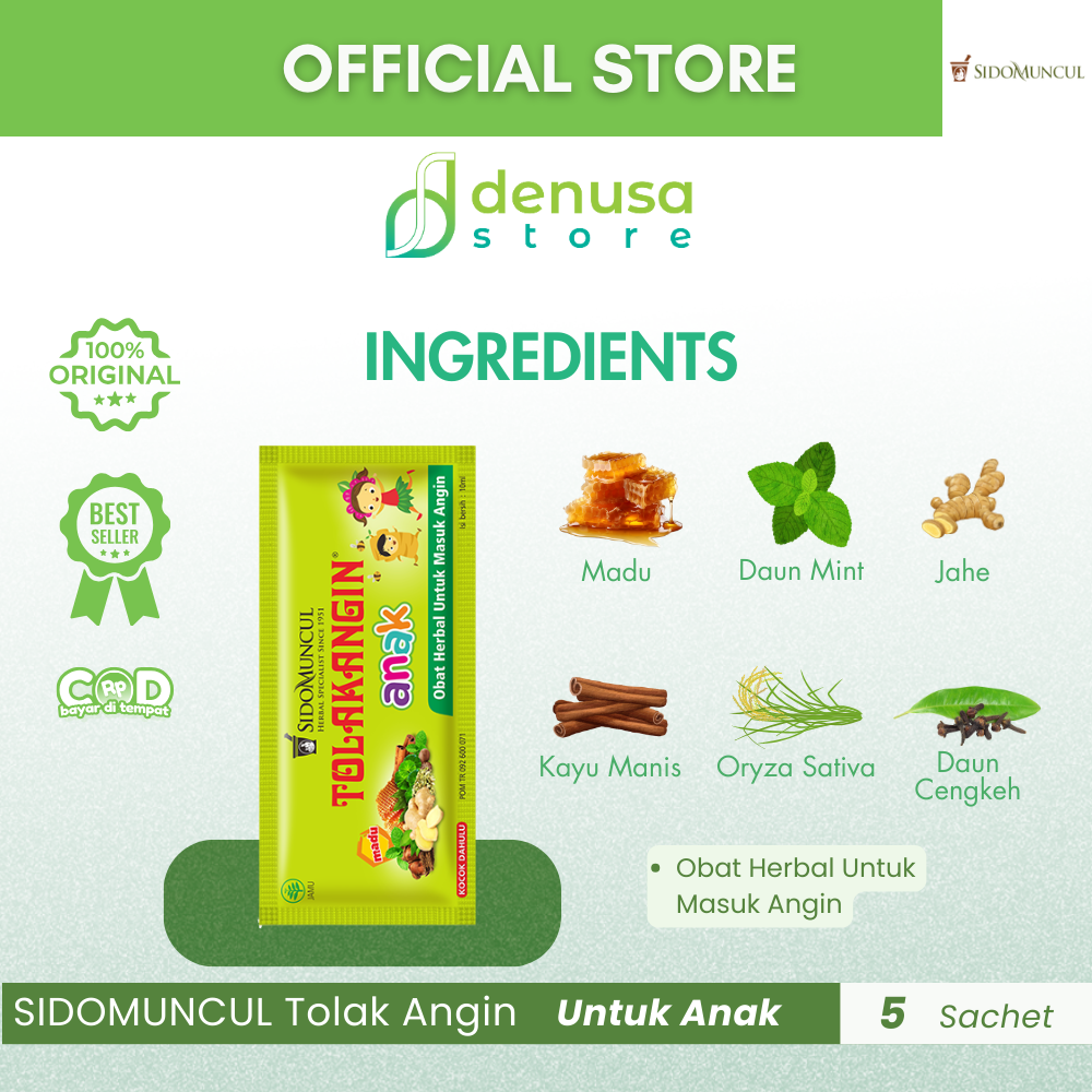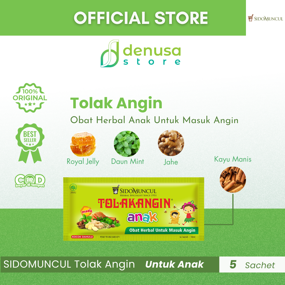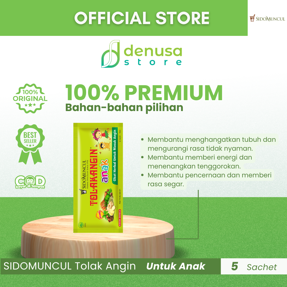 Beli SIDOMUNCUL Tolak Angin Anak 1 Kotak 5 Sachet hanya di denusastore.com. Dapatkan dukungan herbal praktis untuk menjaga kesehatan dan stamina Anda!