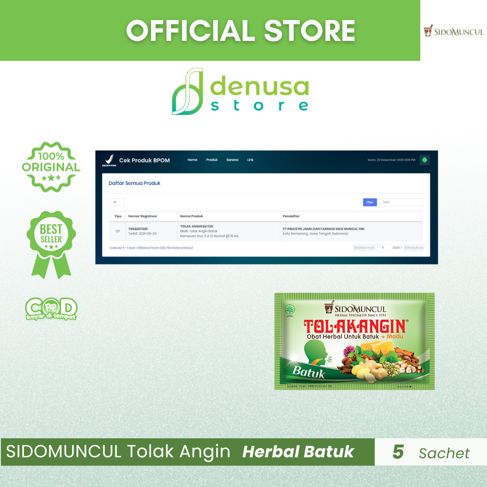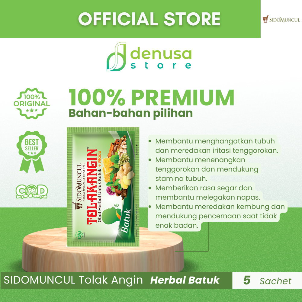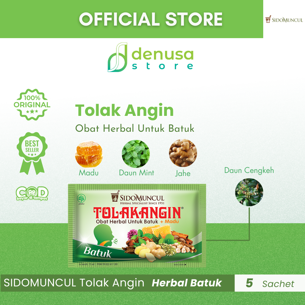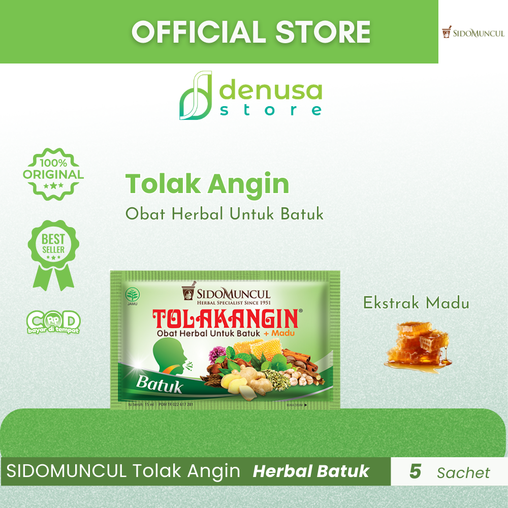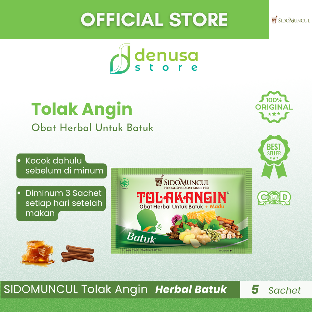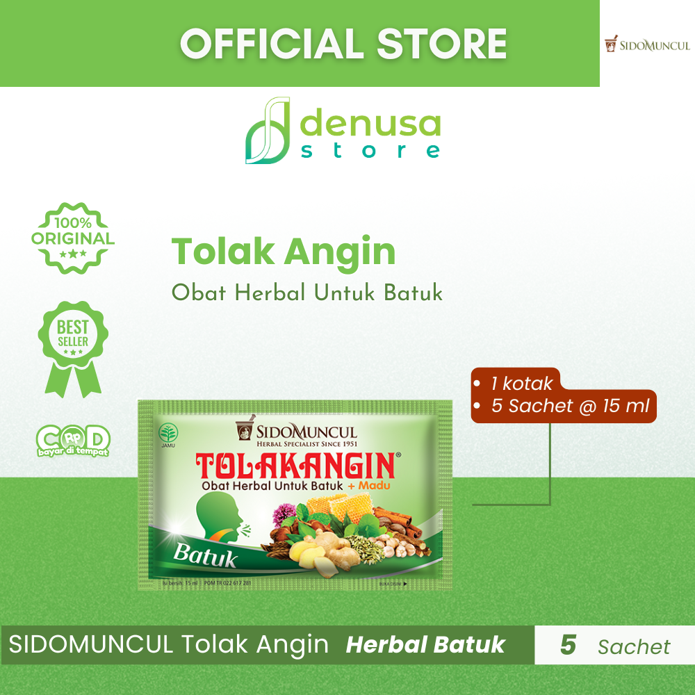Beli Sidomuncul Tolak Angin Batuk 1 Kotak 5 Sachet hanya di denusastore.com. Dapatkan dukungan herbal praktis untuk meredakan batuk dan menjaga kesehatan tenggorokan Anda!