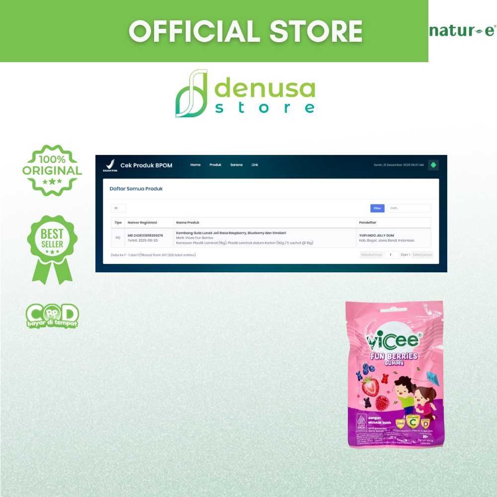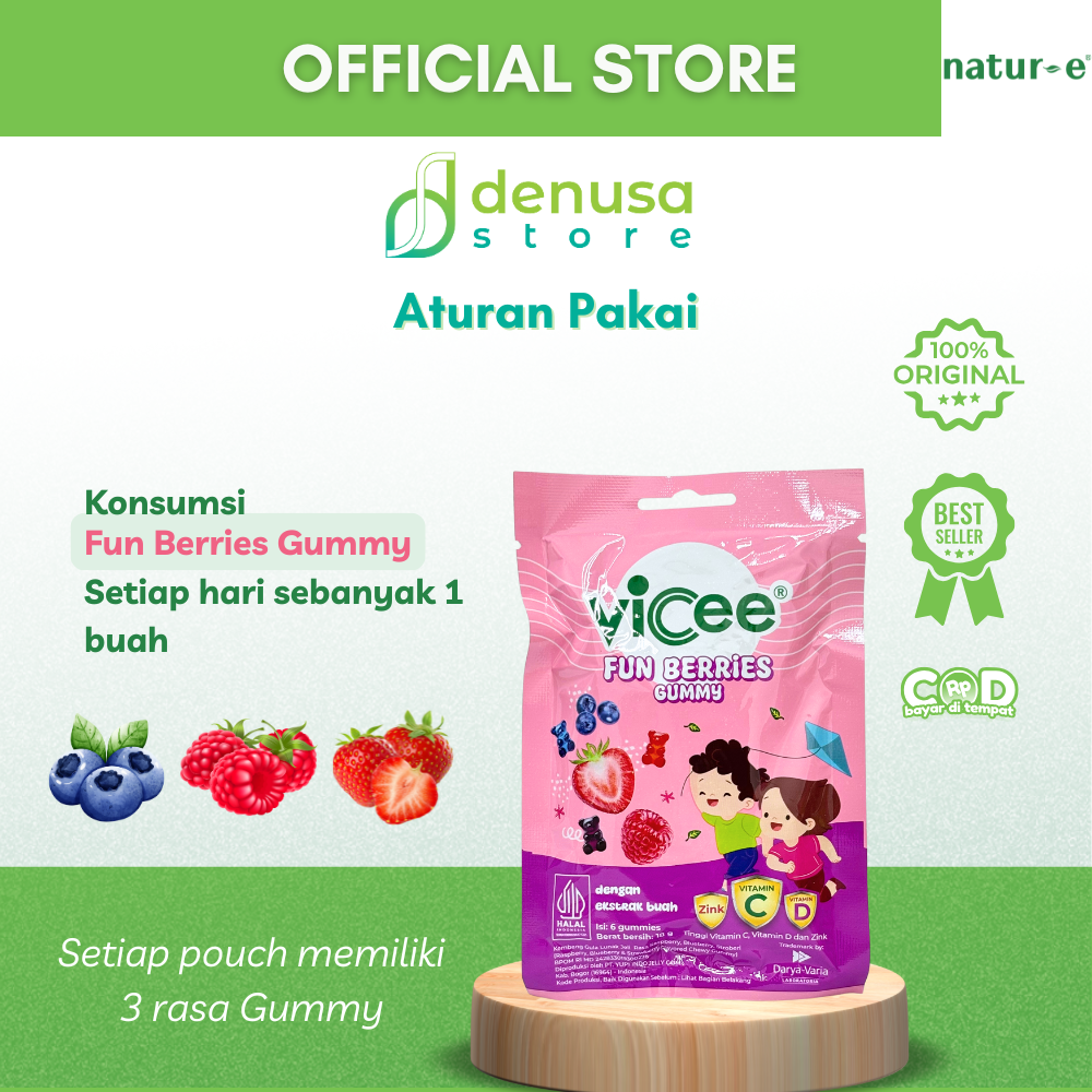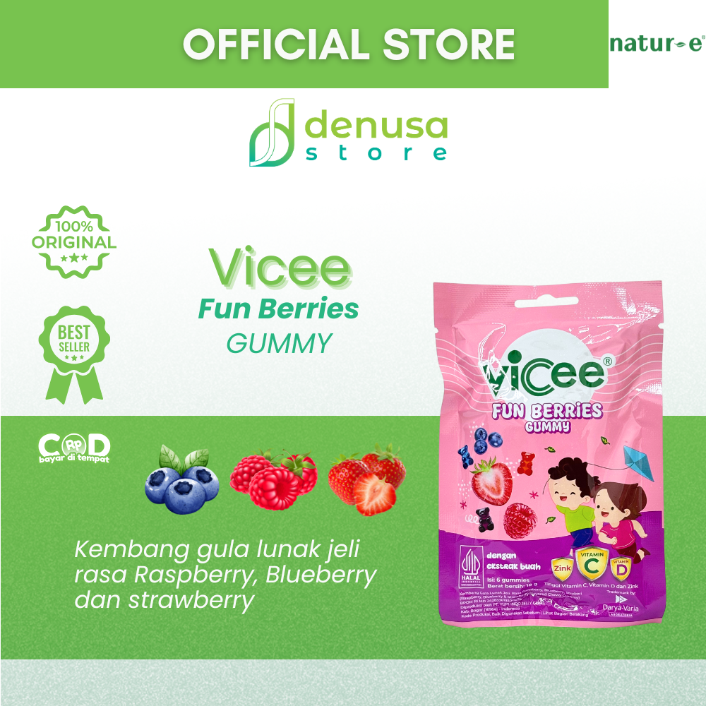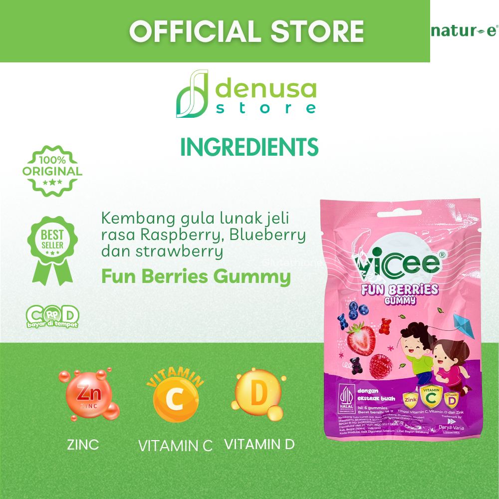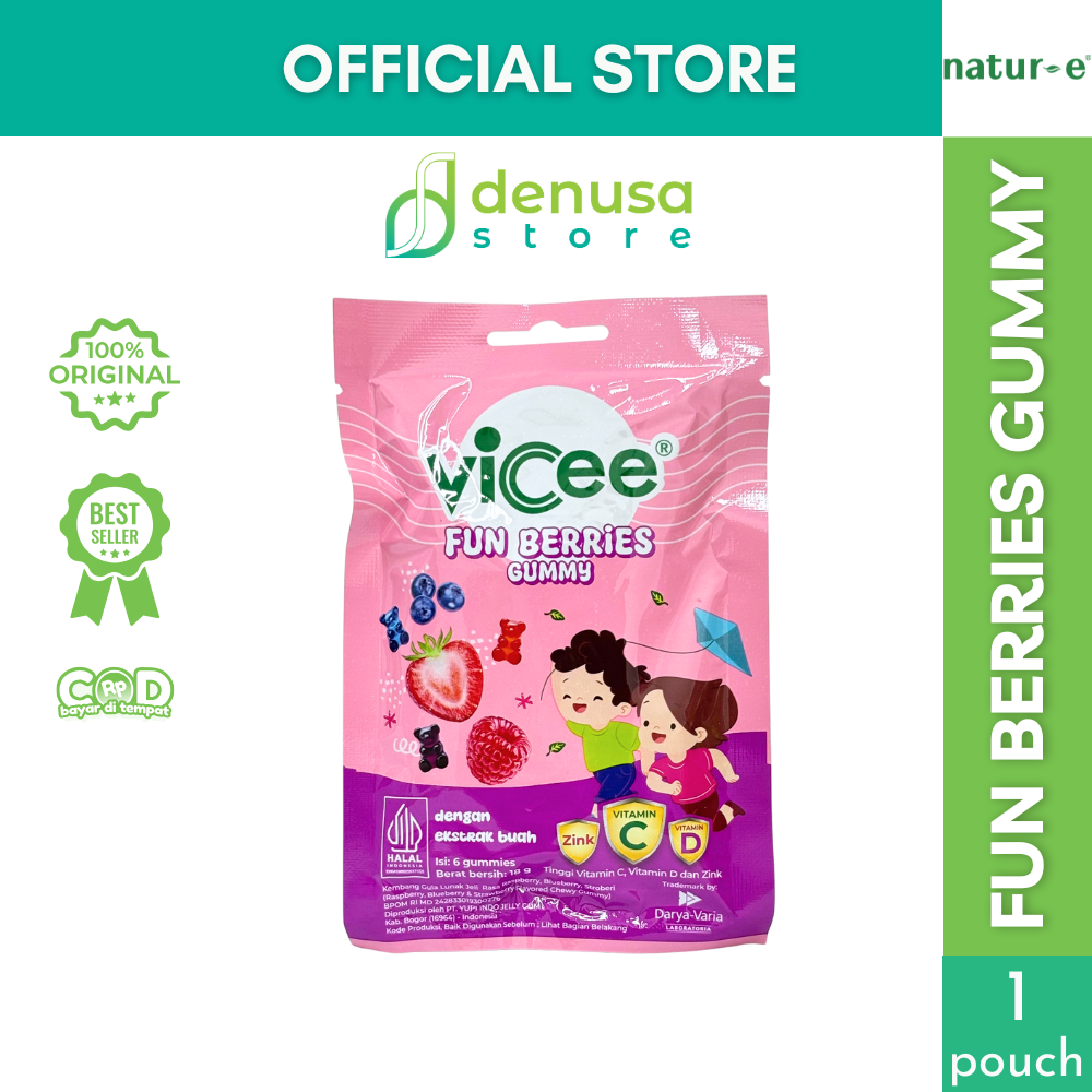 Beli VICEE Fun Berries Gummy 1 Sachet berisi 6 gummies hanya di denusastore.com. Nikmati camilan vitamin C yang enak, praktis, dan menyenangkan.