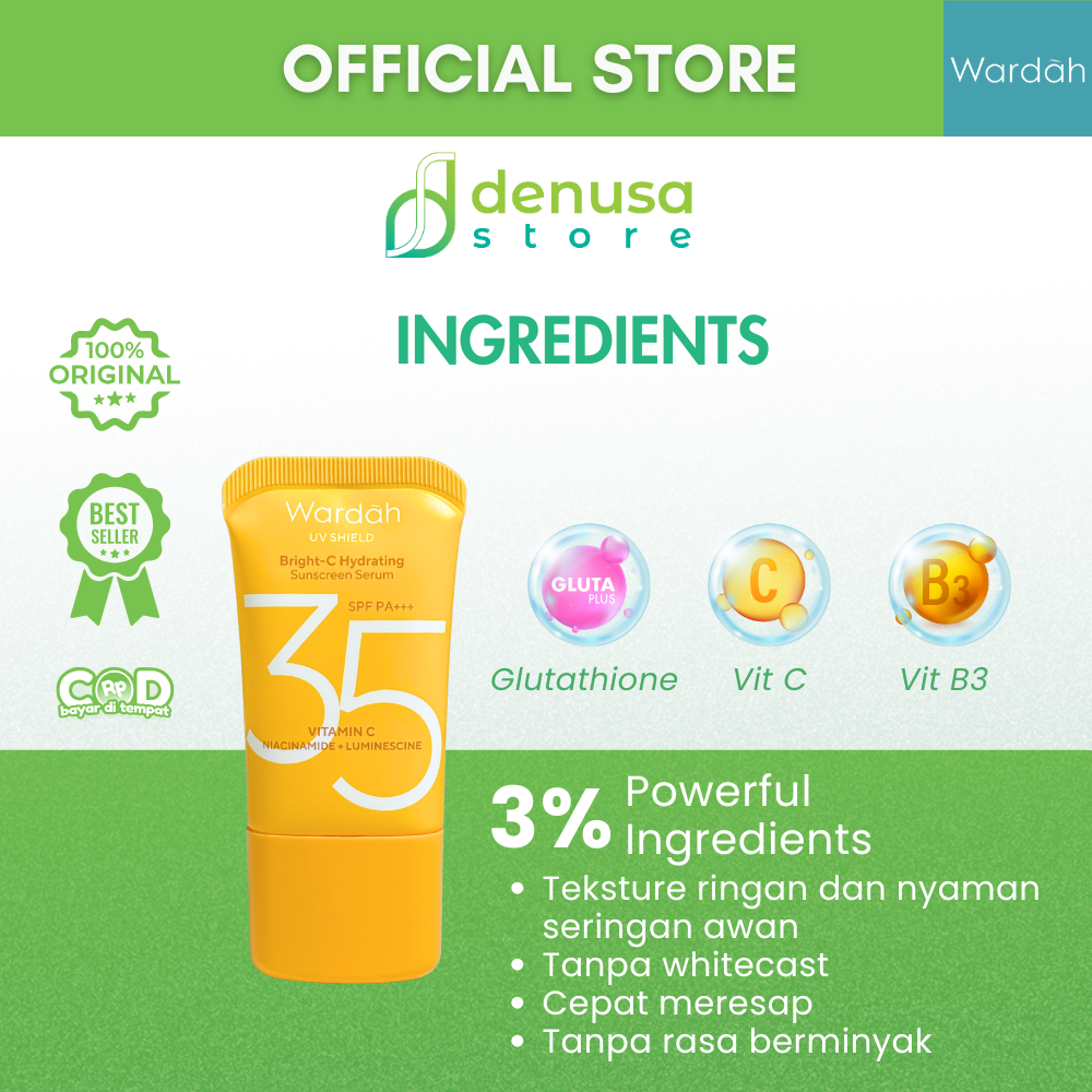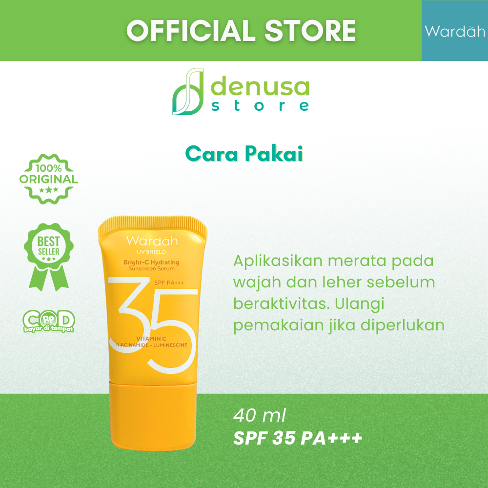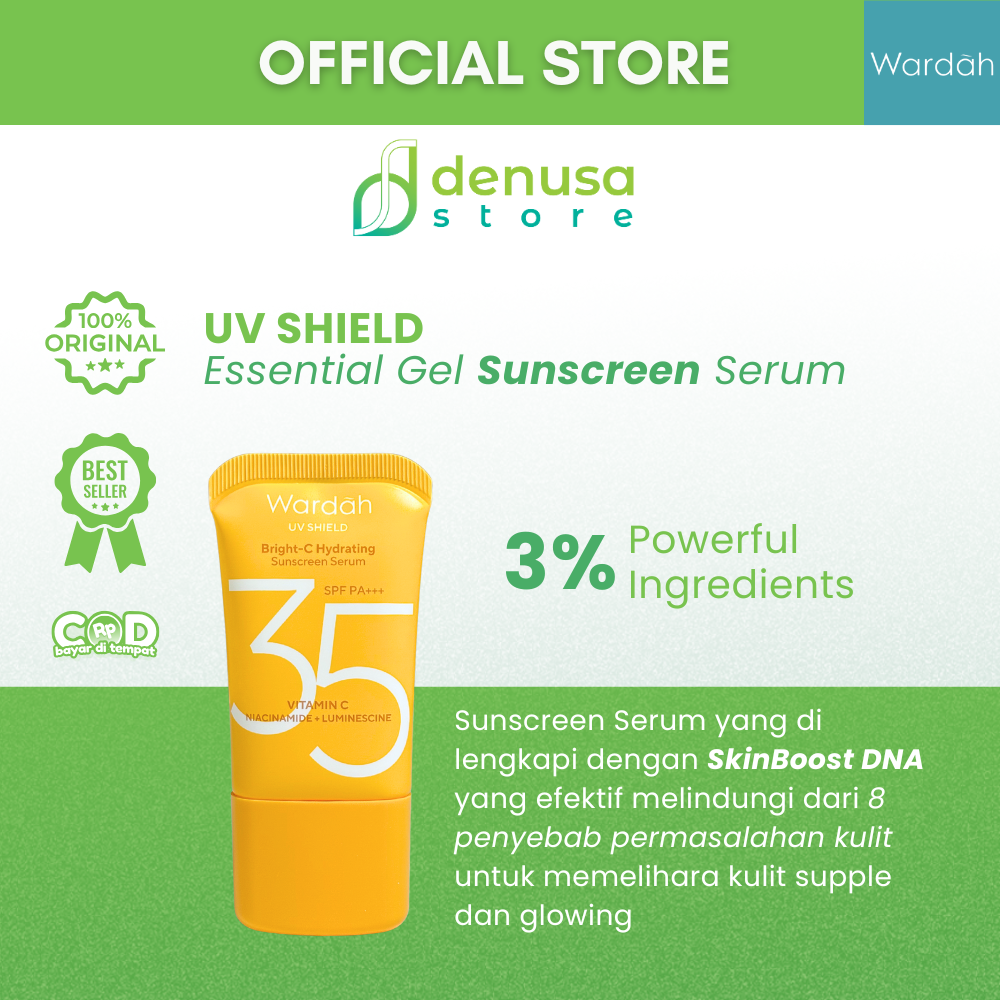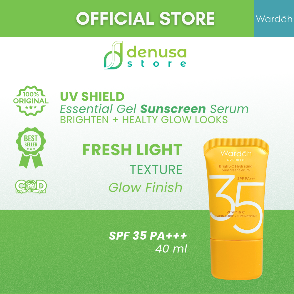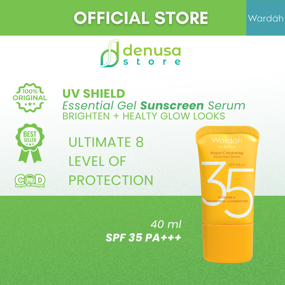 Beli WARDAH UV Shield Bright-C Hydrating Sunscreen Serum SPF 35 PA+++ 40 ml hanya di denusastore.com. Bantu kulitmu terlindungi, tetap lembap, dan tampak glowing alami sepanjang hari.